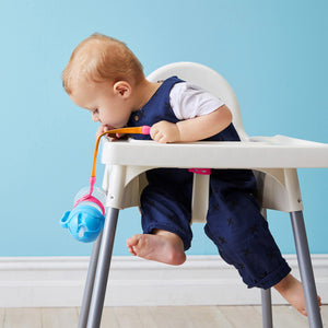 • Attaches to sippy cups and drink bottles (max weight 400 grams) to keep them within easy reach   (sippy cups and drink bottles sold separately)