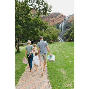 The Bumbo® multi seat tray is easily detached and manoeuvred with one hand to stow away neatly in its slot behind the backrest of the seat.