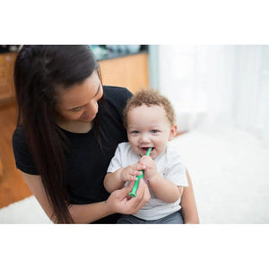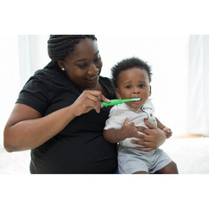 • Fun and playful design engages baby, as it stands ready and waiting for the next brushing