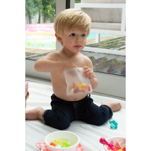 Help your little one position the handle in the center of their palm for a vertical grasp. The utensils feature a choke protection shield to add a layer of safety while your little one builds confidence in self-feeding. These utensils are the perfect learning tool for baby led weaning and beyond! Use the included EVA travel pouch to bring your utensils on the go, or as a reusable snack pouch!