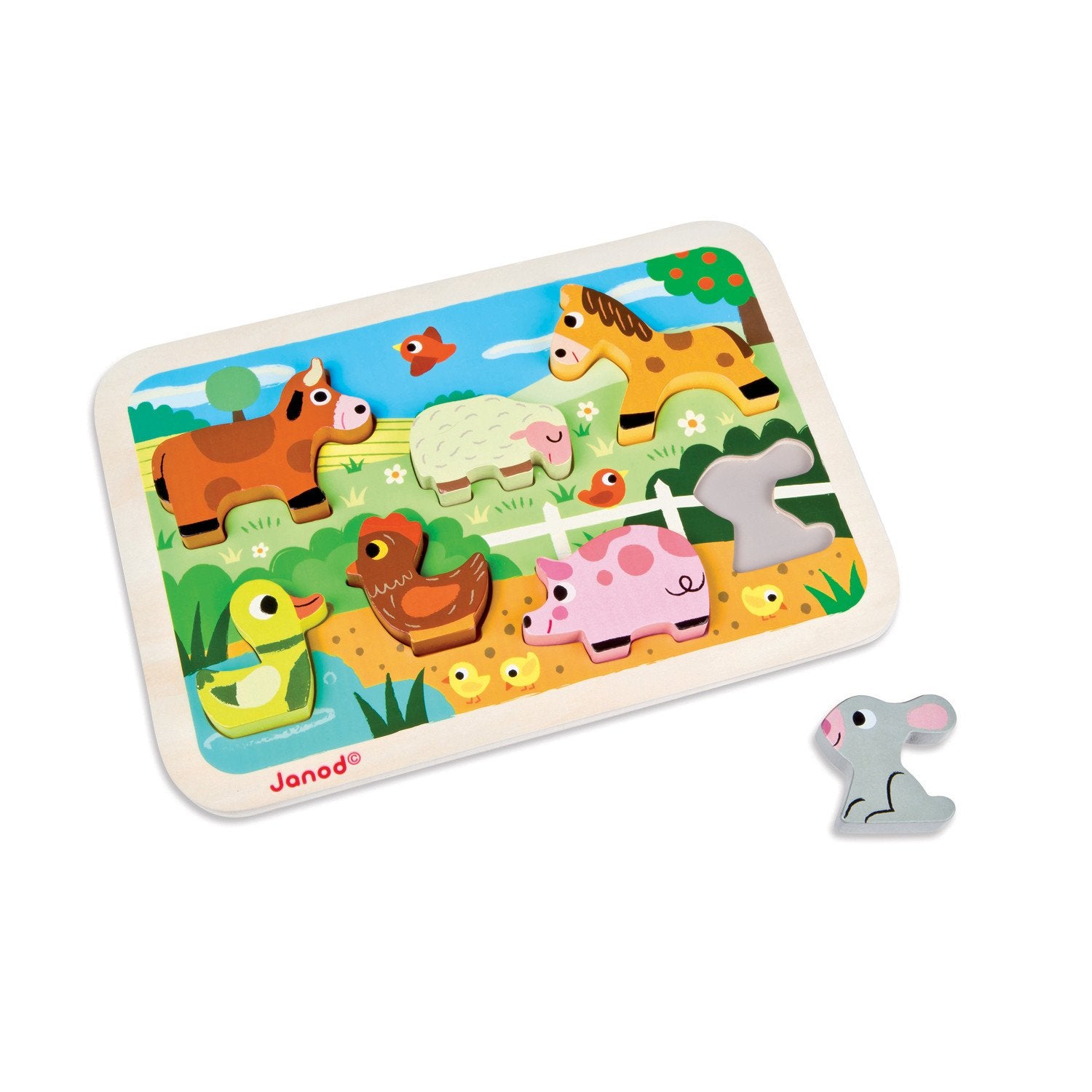 Each puzzle piece is painted on all sides and can be removed from the puzzle and played with on their own, the pieces even stand up! Great for learning object recognition and orientation as a pre-reading skill, Janod puzzles are also perfect for developing puzzle and fine motor skills.
