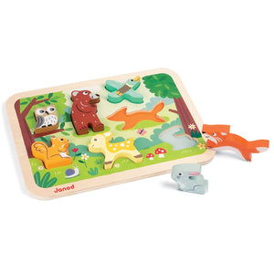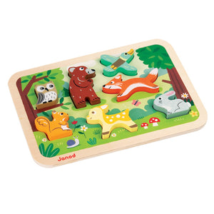 Beautiful matching puzzle made from high-quality wood with your favorite forest animals. 7 animals to recognize and match, which you can also play with, because they`re made in 3D.