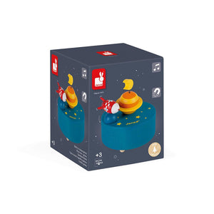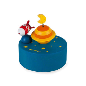 A magic wooden music box! The rocket, mounted on a spring, turns around the planet to the music "In the moonlight". It will be a delight for both young and old. The winder is mechanical. This is not a toy.