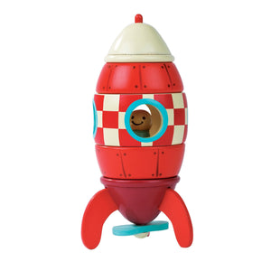 Ten seconds until lift-off! Let imaginations soar to the moon with this wooden rocket ship. Your child will use fine motor skills and problem solving to build this nostalgic rocket ship with 5 wooden pieces held together by magnets. The pieces come in sturdy box for easy clean up and storage. Measures 2.6 x 2.6 x 6.3 inches.