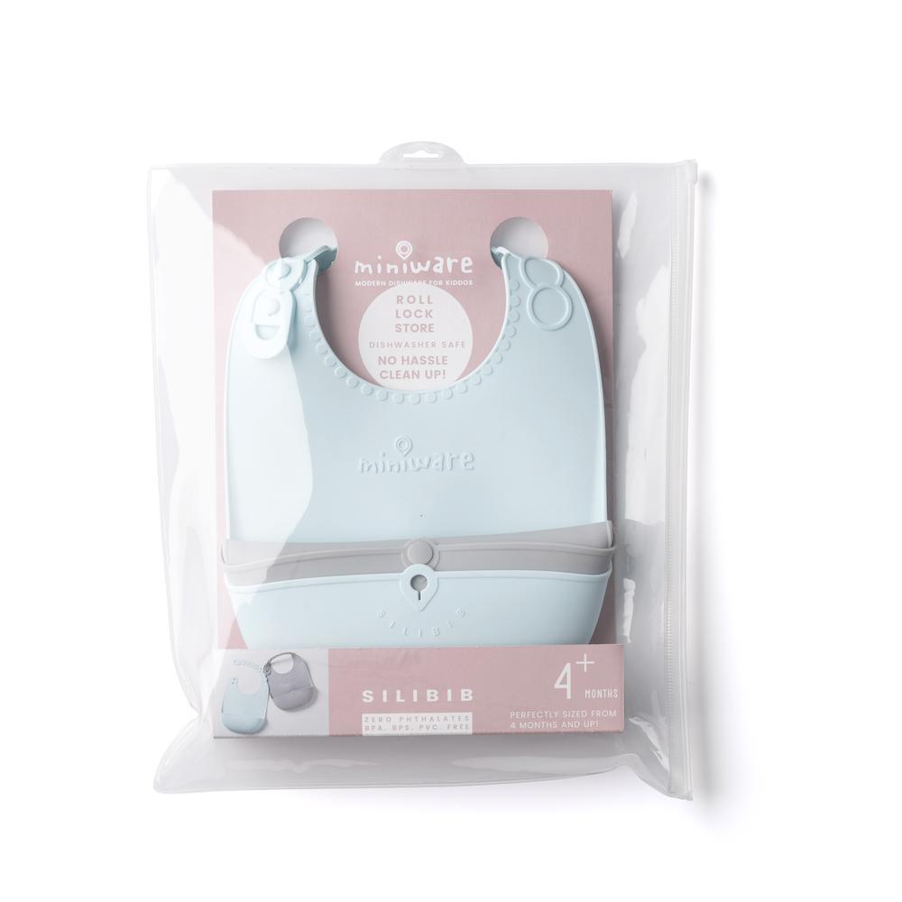 Miniware Roll & Lock bib (Set of 2) - Silicone Bib in Aqua + Grey