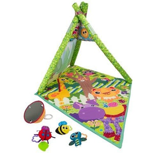 • Soft padded 154cm play mat with brightly coloured pictures and patterns encourages sensory discovery and development of motor skills