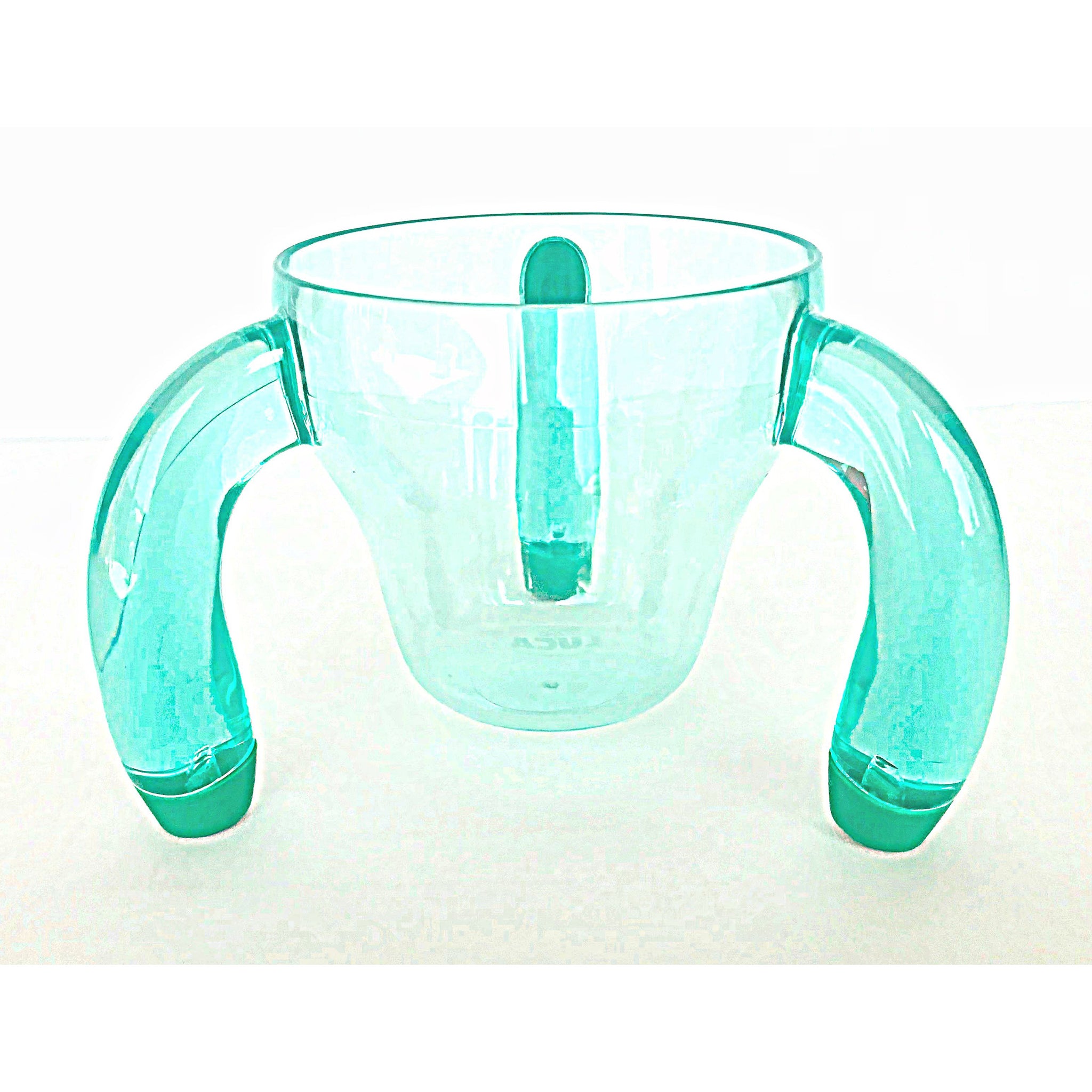 • More handles are better than one. The goal of the transition is to make the child feel comfortable enough to grasp an adult-sized cup. Since larger cups require the use of two hands, it is better for the child to get into this habit early.