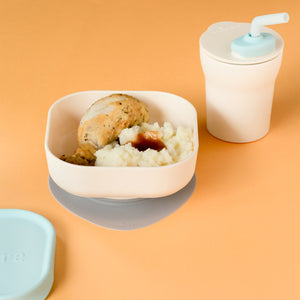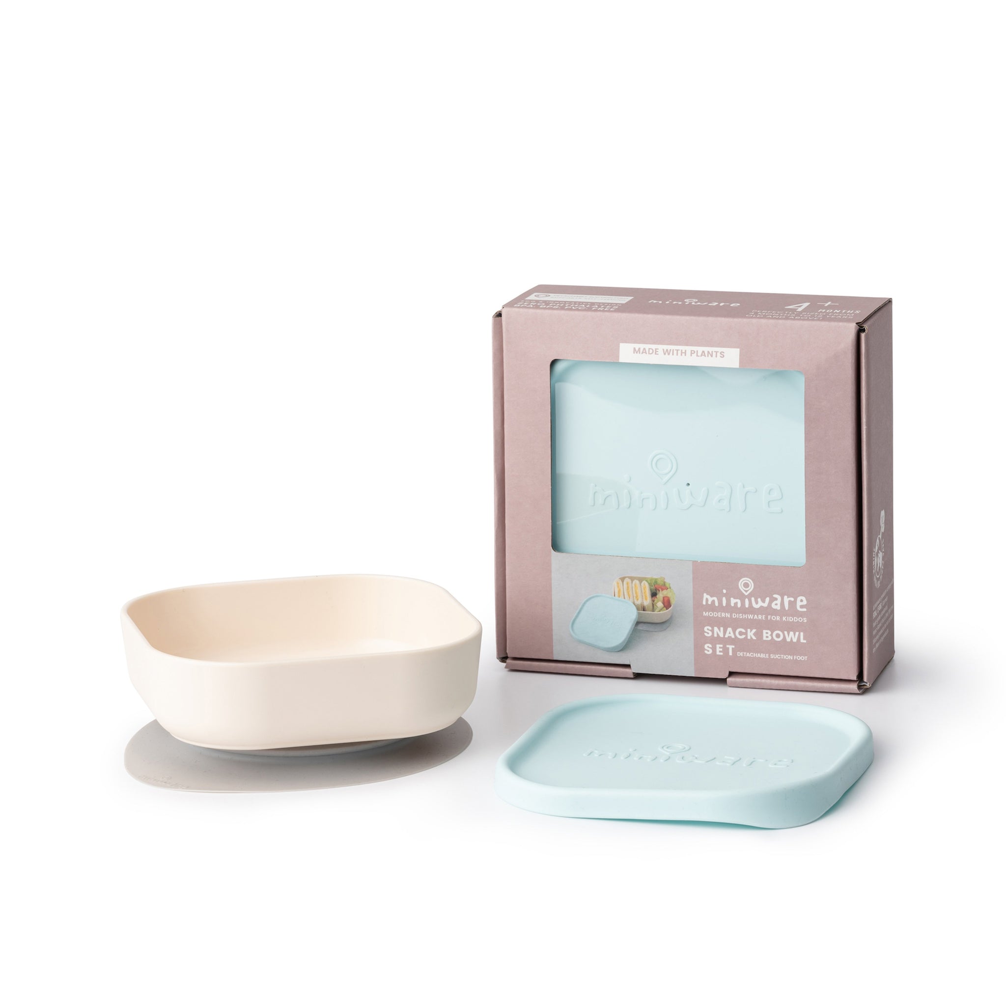 Miniware Snack Bowl Set - PLA Suction Bowl Vanilla + Silicone Cover in Aqua