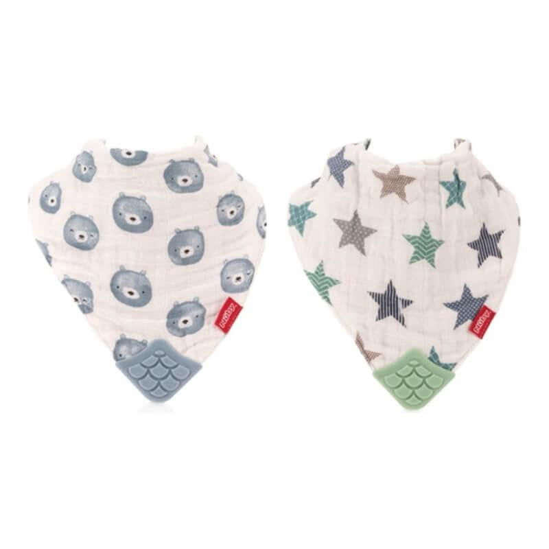 Nuby Muslin Bandana Bibs with Teether Business Wear Star & Bi-Polar Bears - Pack of 2