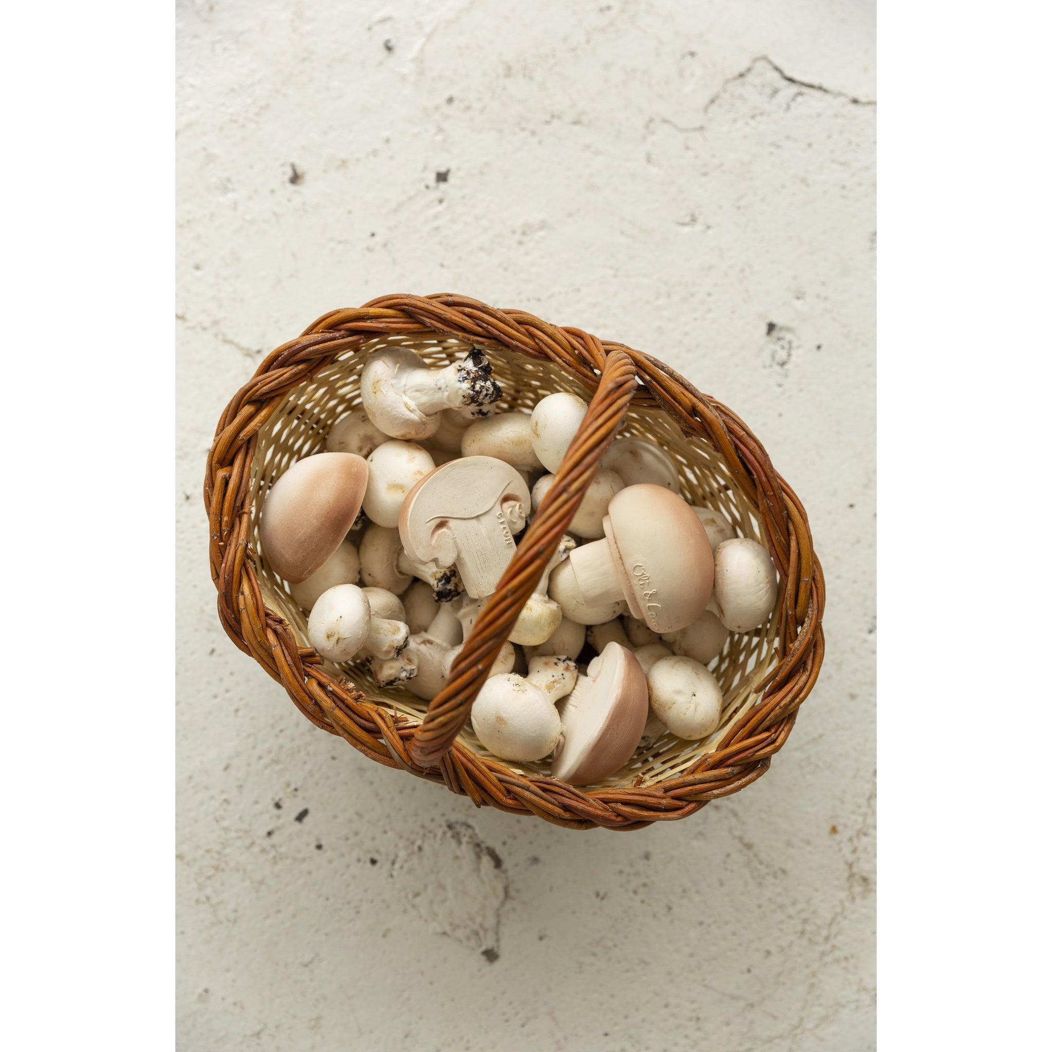 Manolo the Mushroom is a chewable baby toy for teething, bath time and sensory play. Handmade in 100% natural rubber and hand painted with natural pigments.