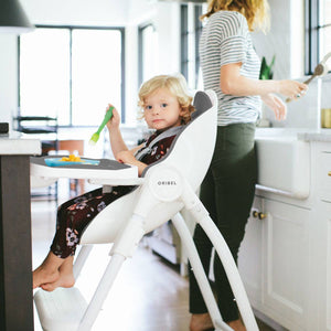 The Complete high chair, Cocoon, transforms from a comfortable recliner to an early feeding modern high chair with its unique and ergonomically designed Food & Cup Holder.