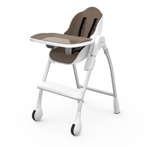 The Complete high chair, Cocoon, transforms from a comfortable recliner to an early feeding modern high chair with its unique and ergonomically designed Food & Cup Holder.