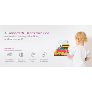 Come sun, come rain, Mr. Bear always drives his train. Little ones can help Mr. Bear go faster by turning the interconnecting wheels, as smoke clouds puff out of the chute when the wheels are turned. Kids will love watching all the action and movement in this toy.