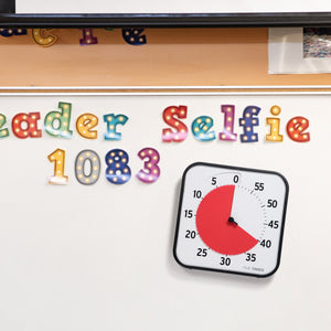 The Time Timer Original 12” is an ideal 60-minute countdown timer for groups or large room settings - it can easily be seen from across any room! The visual timer has a clear lens that protects the patented red disk. With its magnetic back and foldable feet, the timer can be displayed a multitude of ways. It's perfect for a workspace or learning center at home or in the classroom or the office. Help keep your child on track with their education plans during at-home learning or keep it in the background of a Zoom Meeting or Google Classroom virtual learning environment to help everyone on track.