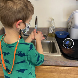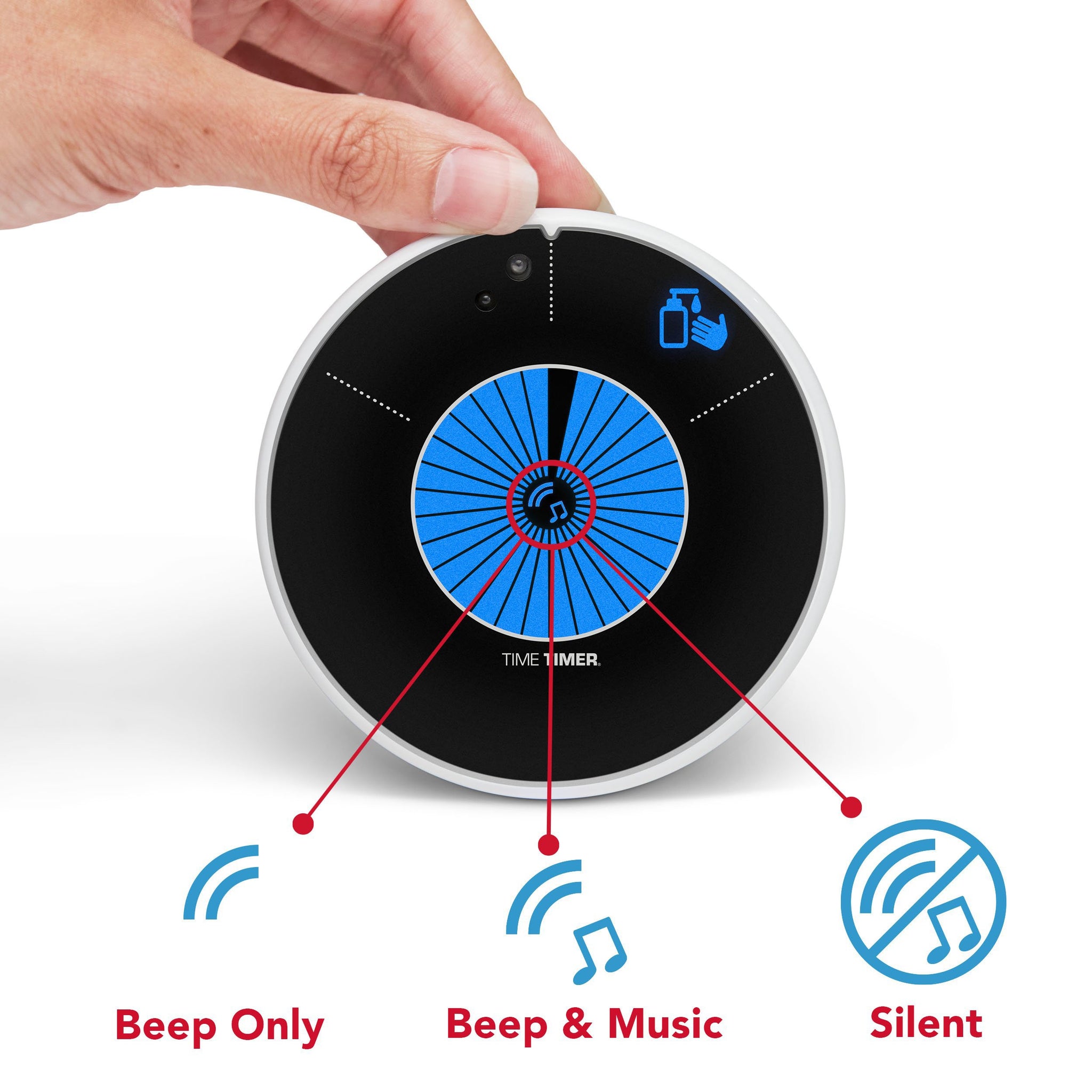 Music and sound can be switched off and on. The sound can be used to help reinforce steps or the WASH timer can be run silently for sound sensitive environments. Play the video below to hear the music and sounds of the Time Timer WASH.