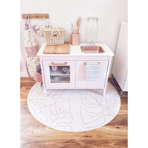 Our versatile mats are designed to protect your floors from playtime spills and mealtime messes, and can also be used under dressing tables, desk chairs or anywhere else where floor protection is a must. From the Jungle Series, this mat is a neutral beige, accented by a leaf design.